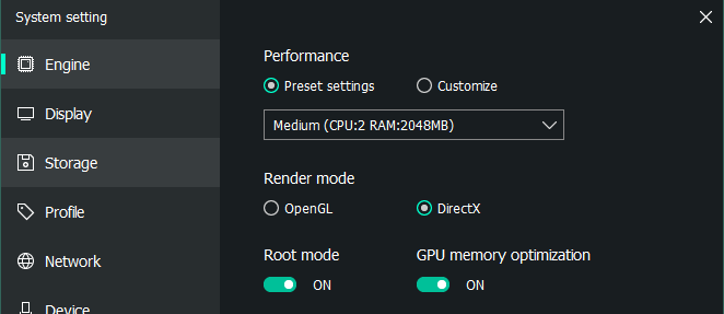 - Set Render mode to DirectX - Set Resolution - 1280 * 720 - 192 dpi - In Multi Instance Manager - Set Instance name = "MEmu" (for 1st bot) - And 2nd bot = "bot2" 3rd bot = "bot3" 4th bot = "bot4"